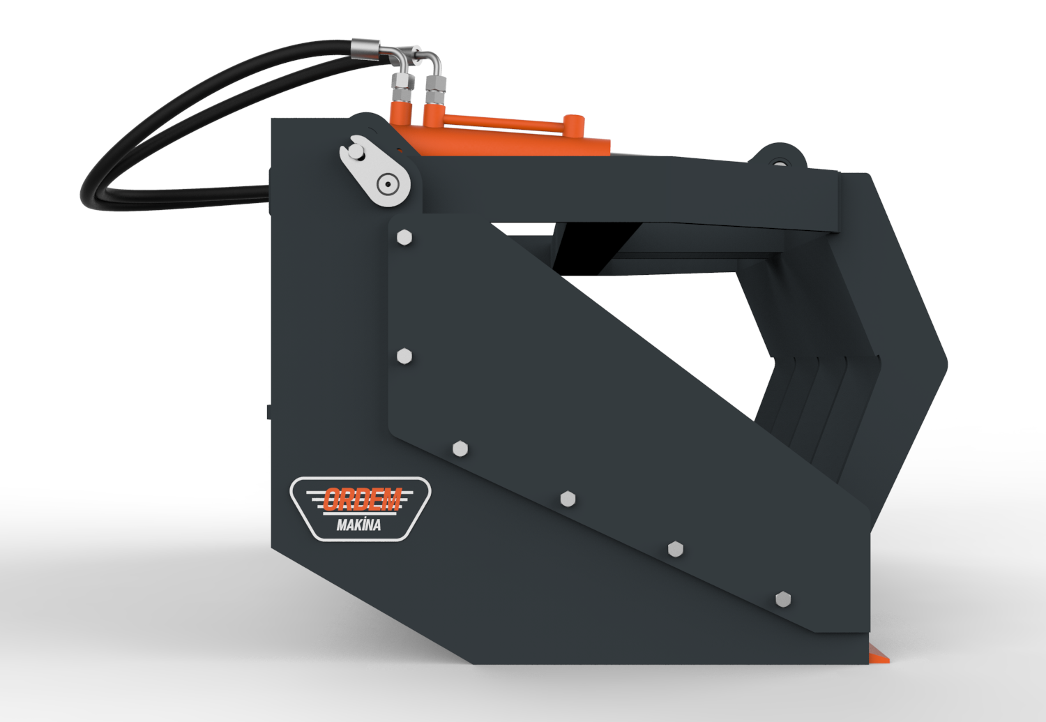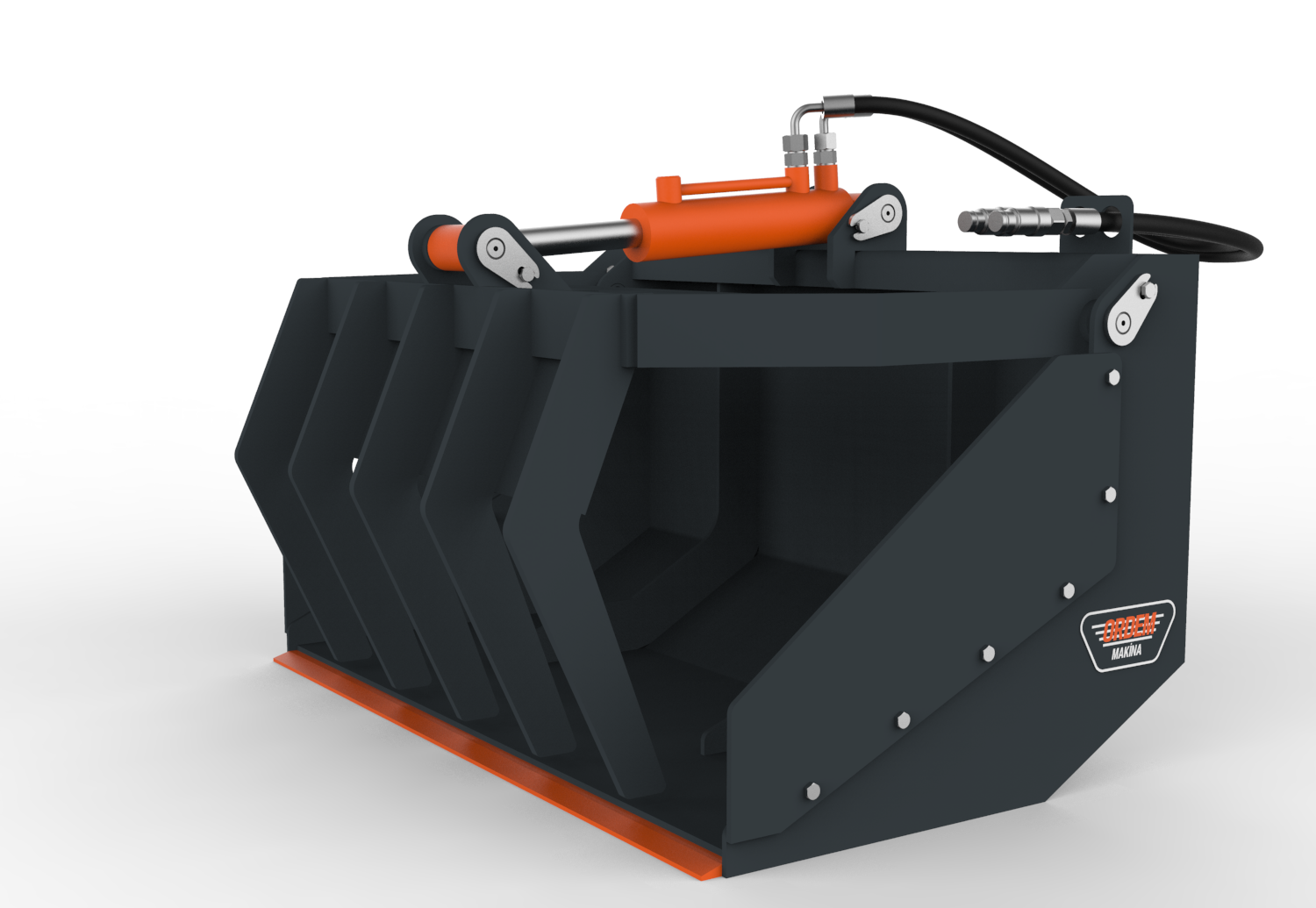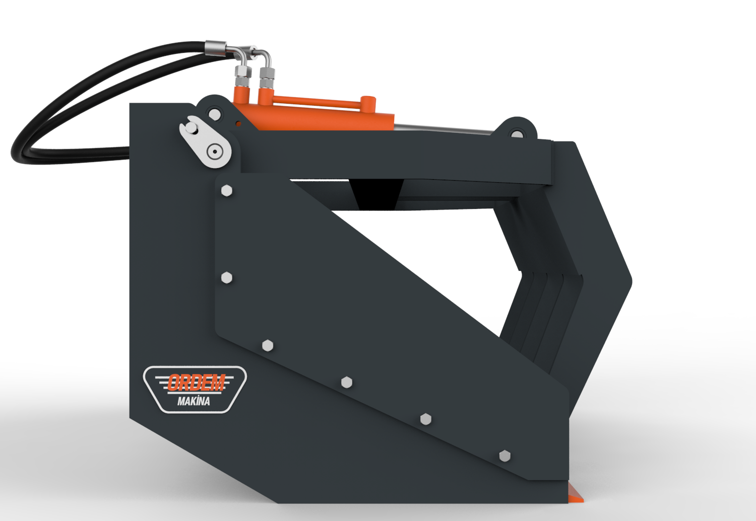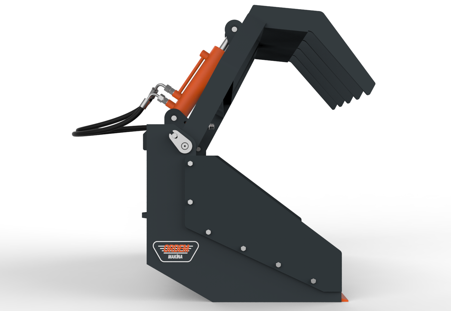 ORDEM MAKİNA kıskaçlı kovalar, dağınık ve toplu olarak taşınması zor olan malzemelerin kıstırılarak taşınması, yüklenmesi ve boşaltma işlemleri için kullanılmak üzere tasarlanmıştır. Konstrüksiyon yapısına göre 1 veya 2 hidrolik silindir tahrikli olarak imal edilmekte ve hafif veya ağır hizmet tipi olarak adlandırılmaktadır. Hafif hizmet tipi kıskaçlı kovalar dal, sap, kütük, uzun otlar vb. malzemelerin taşınması için kullanılabilmektedir. Ağır hizmet tipi kıskaçlı kovalar ise yıkım ve geri dönüşüm işlerinde ortaya çıkan ağır ve dağınık molozların dökülmeden taşınması vb. işler için kullanılabilmektedir. Her iki tipte de kova alt sacının aşınmasını önlemek için kova altının zemine direk temasını önleyen yüksek aşınma dayanımına sahip çelikten imal uç plakaları kullanılmaktadır.