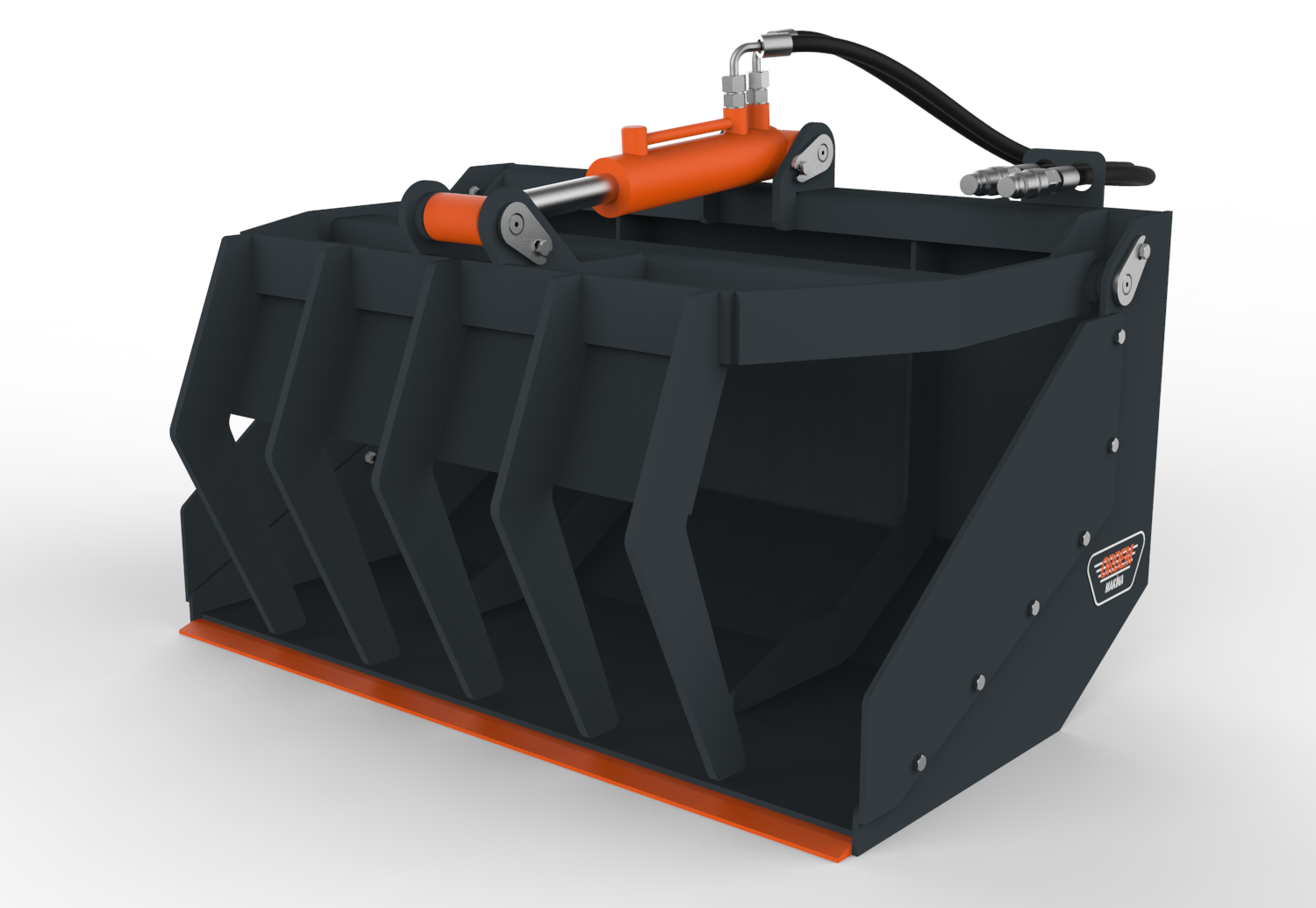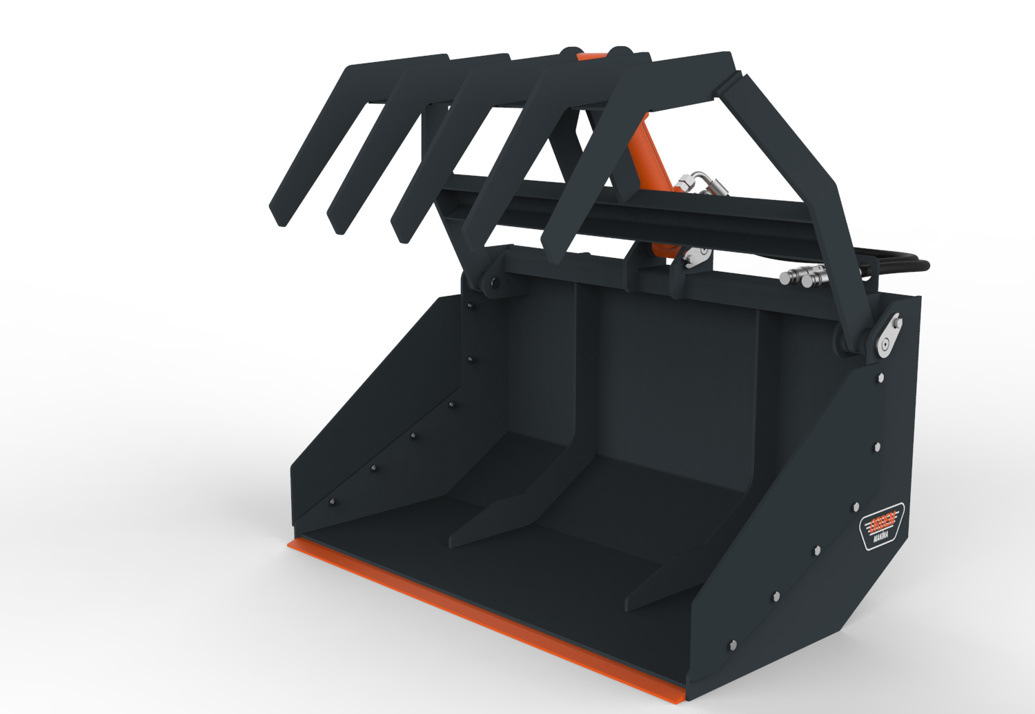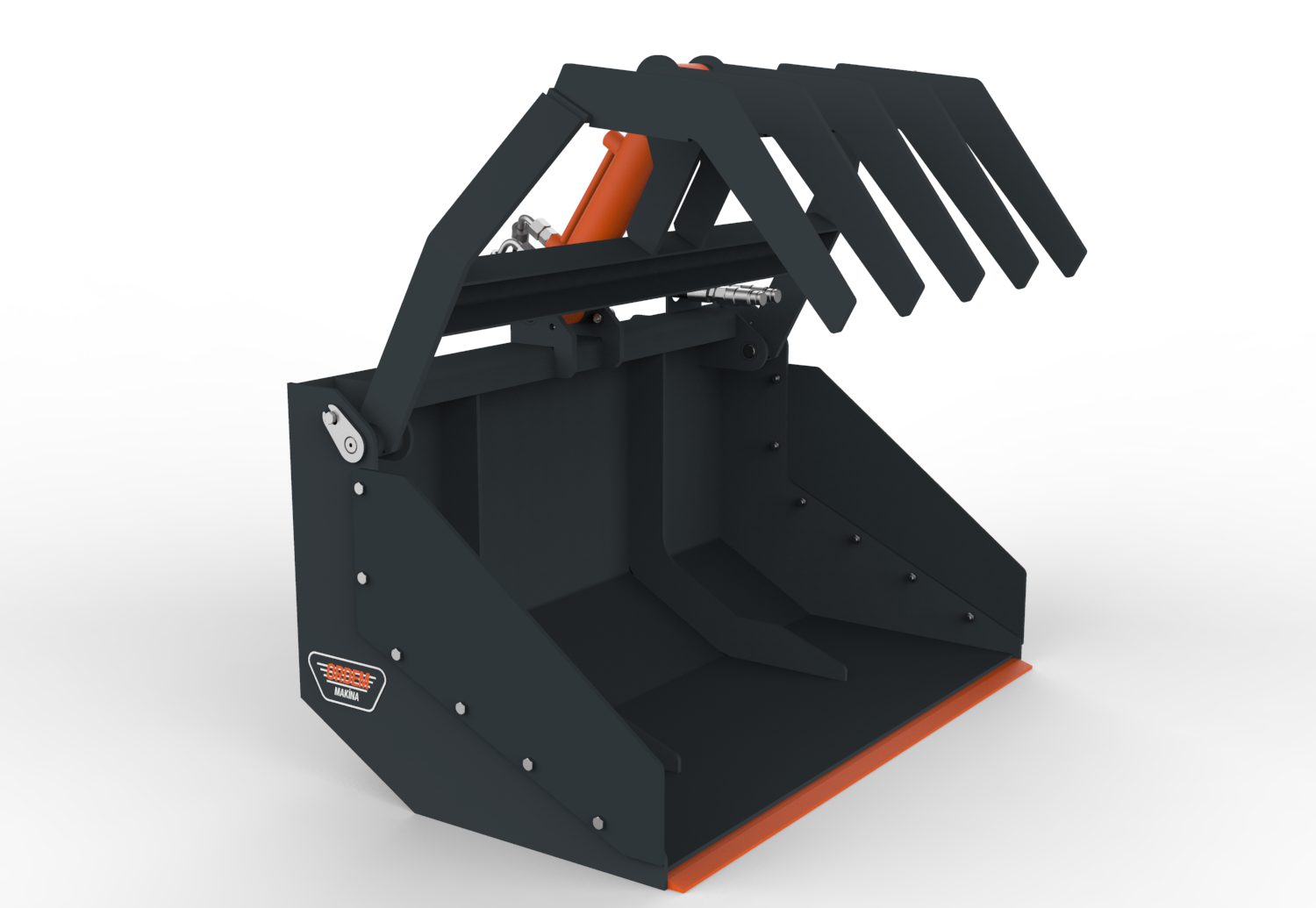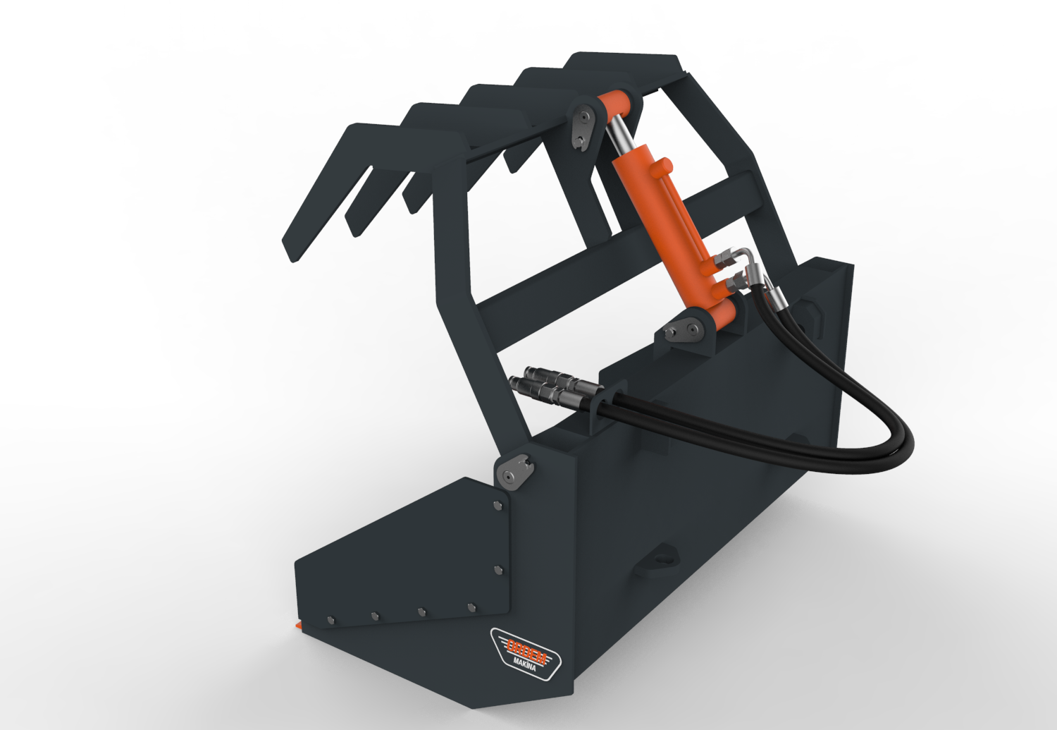ORDEM MAKİNA kıskaçlı kovalar, dağınık ve toplu olarak taşınması zor olan malzemelerin kıstırılarak taşınması, yüklenmesi ve boşaltma işlemleri için kullanılmak üzere tasarlanmıştır. Konstrüksiyon yapısına göre 1 veya 2 hidrolik silindir tahrikli olarak imal edilmekte ve hafif veya ağır hizmet tipi olarak adlandırılmaktadır. Hafif hizmet tipi kıskaçlı kovalar dal, sap, kütük, uzun otlar vb. malzemelerin taşınması için kullanılabilmektedir. Ağır hizmet tipi kıskaçlı kovalar ise yıkım ve geri dönüşüm işlerinde ortaya çıkan ağır ve dağınık molozların dökülmeden taşınması vb. işler için kullanılabilmektedir. Her iki tipte de kova alt sacının aşınmasını önlemek için kova altının zemine direk temasını önleyen yüksek aşınma dayanımına sahip çelikten imal uç plakaları kullanılmaktadır.
